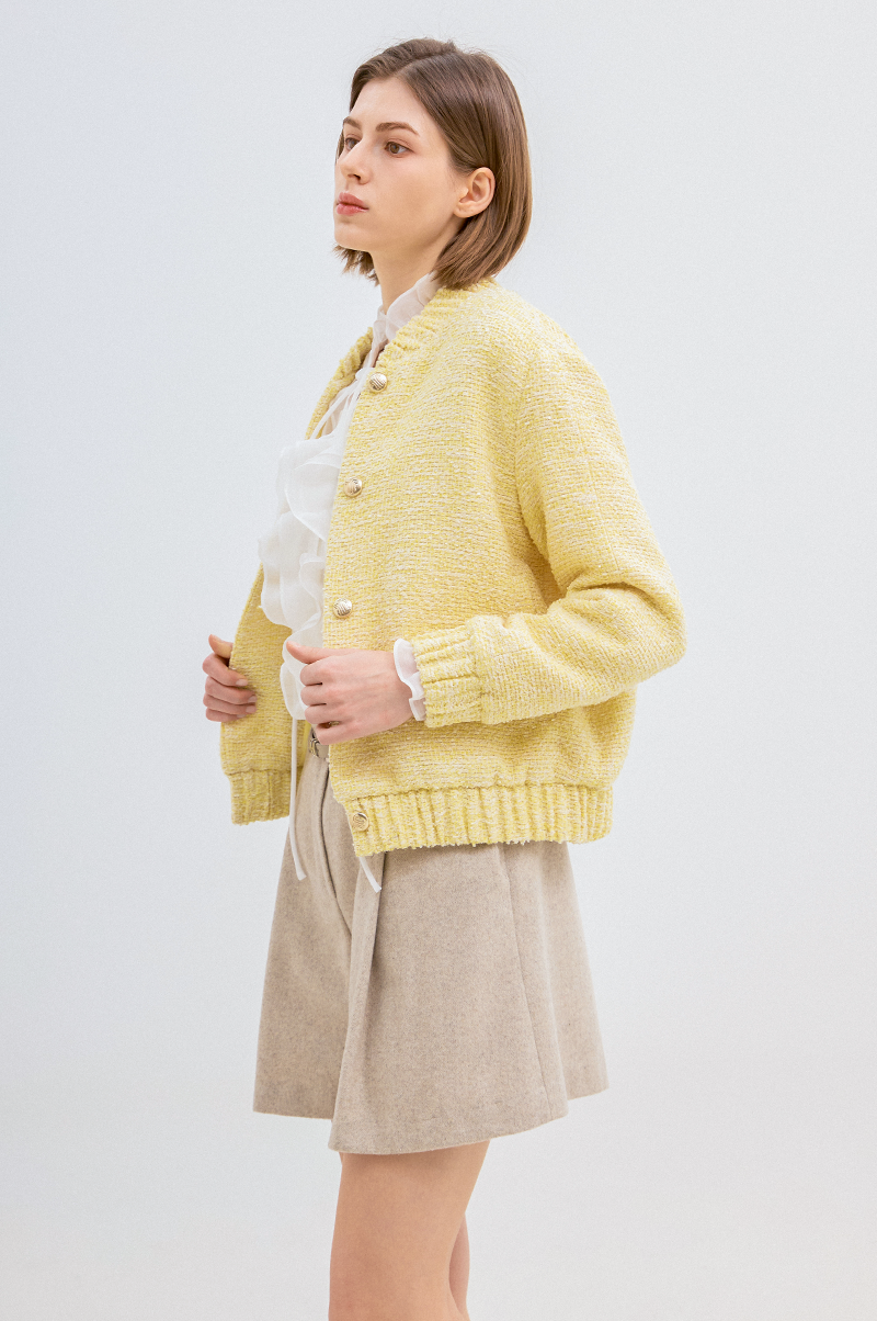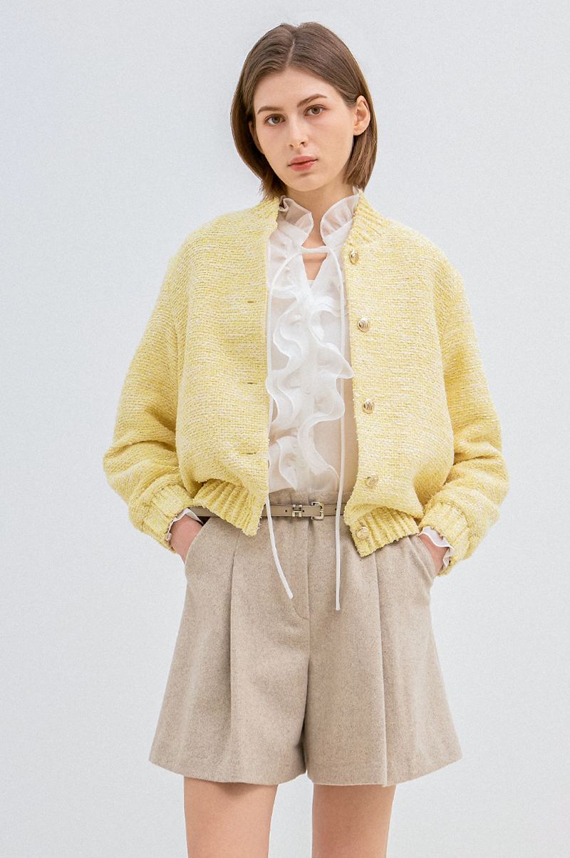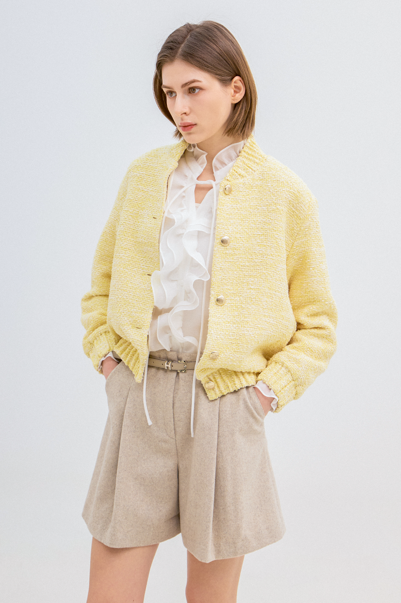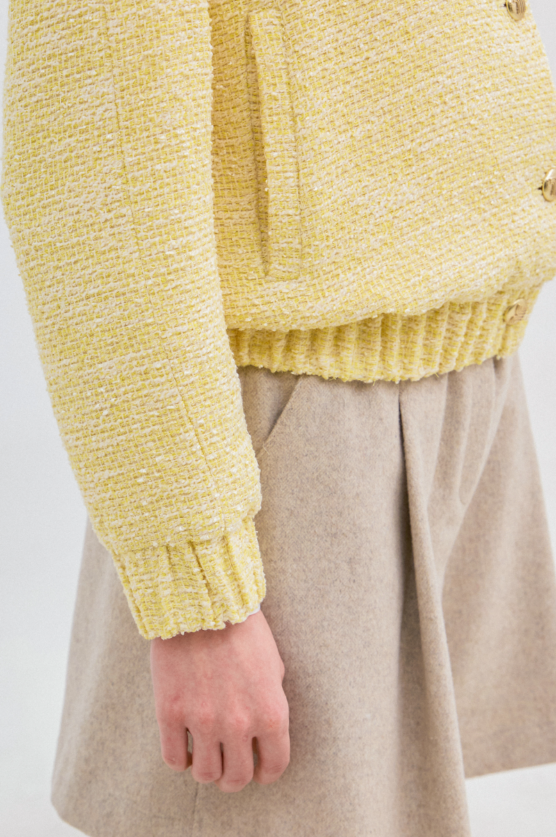 고급 코튼 혼방 소재를 사용한 트위드 점퍼입니다.
