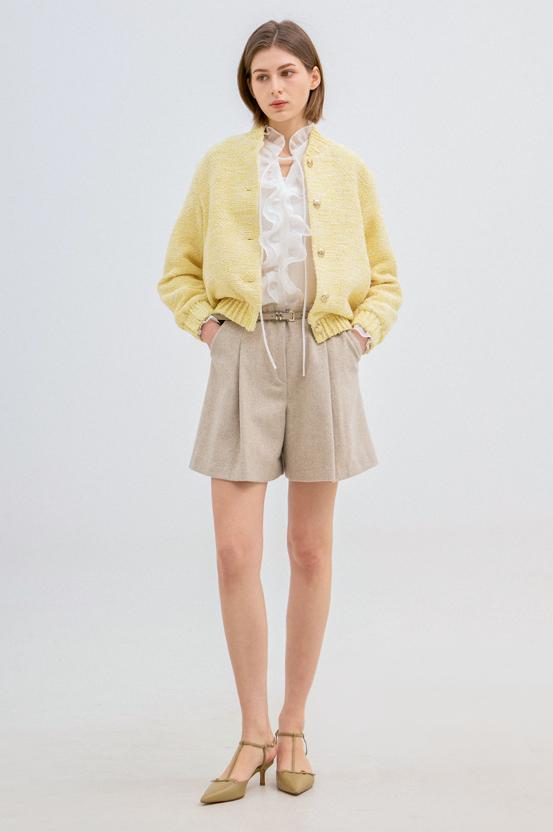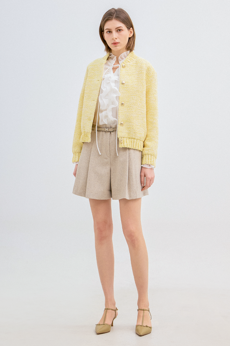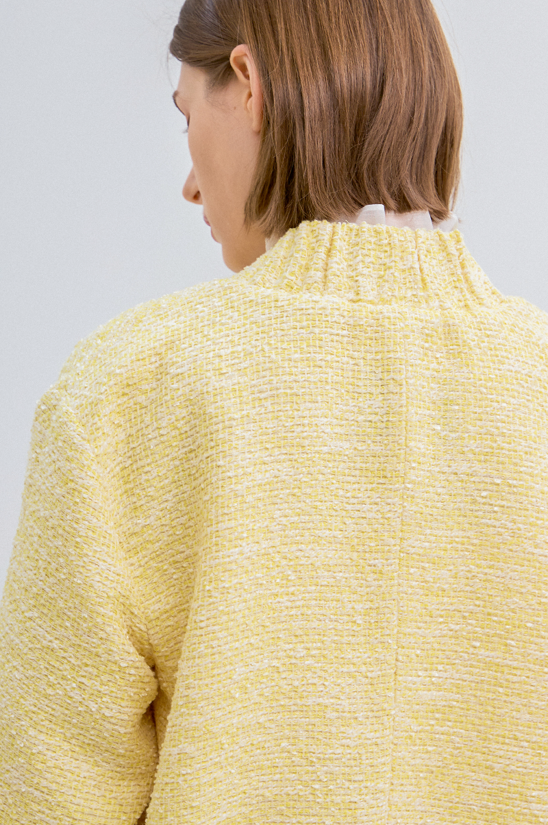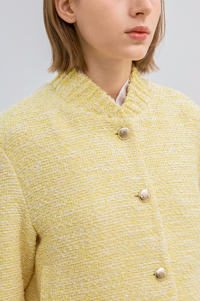 고급 코튼 혼방 소재를 사용한 트위드 점퍼입니다.