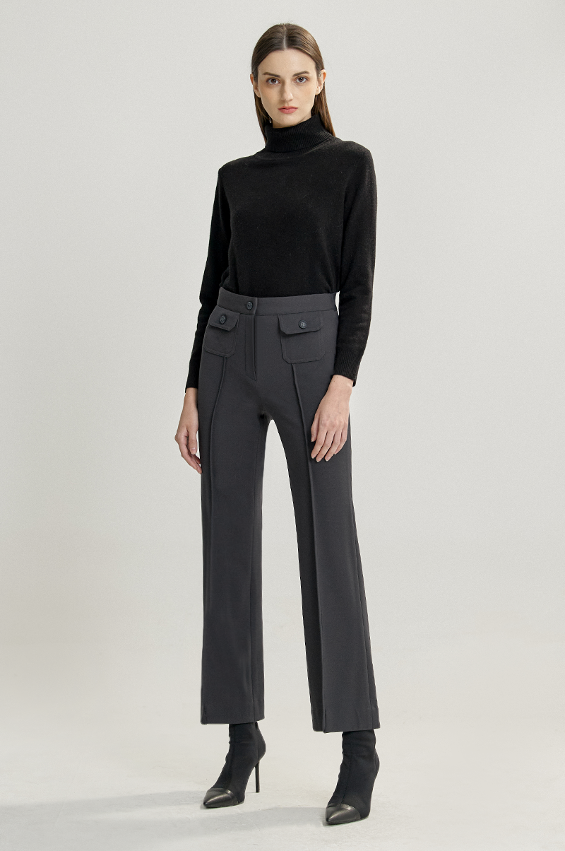 밑단으로 갈수록 점차 넓어지는 부츠컷 실루엣의 트렌디한 팬츠입니다.