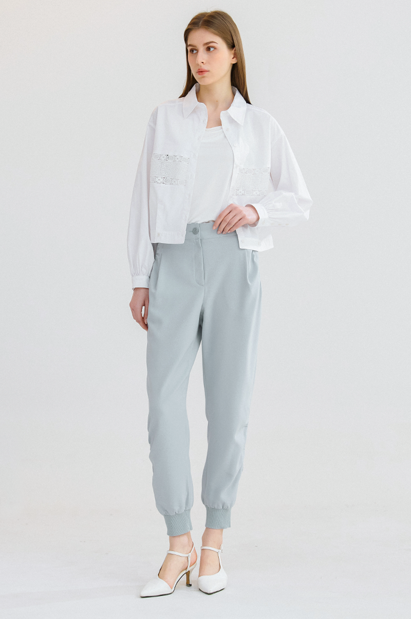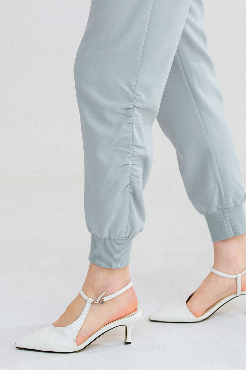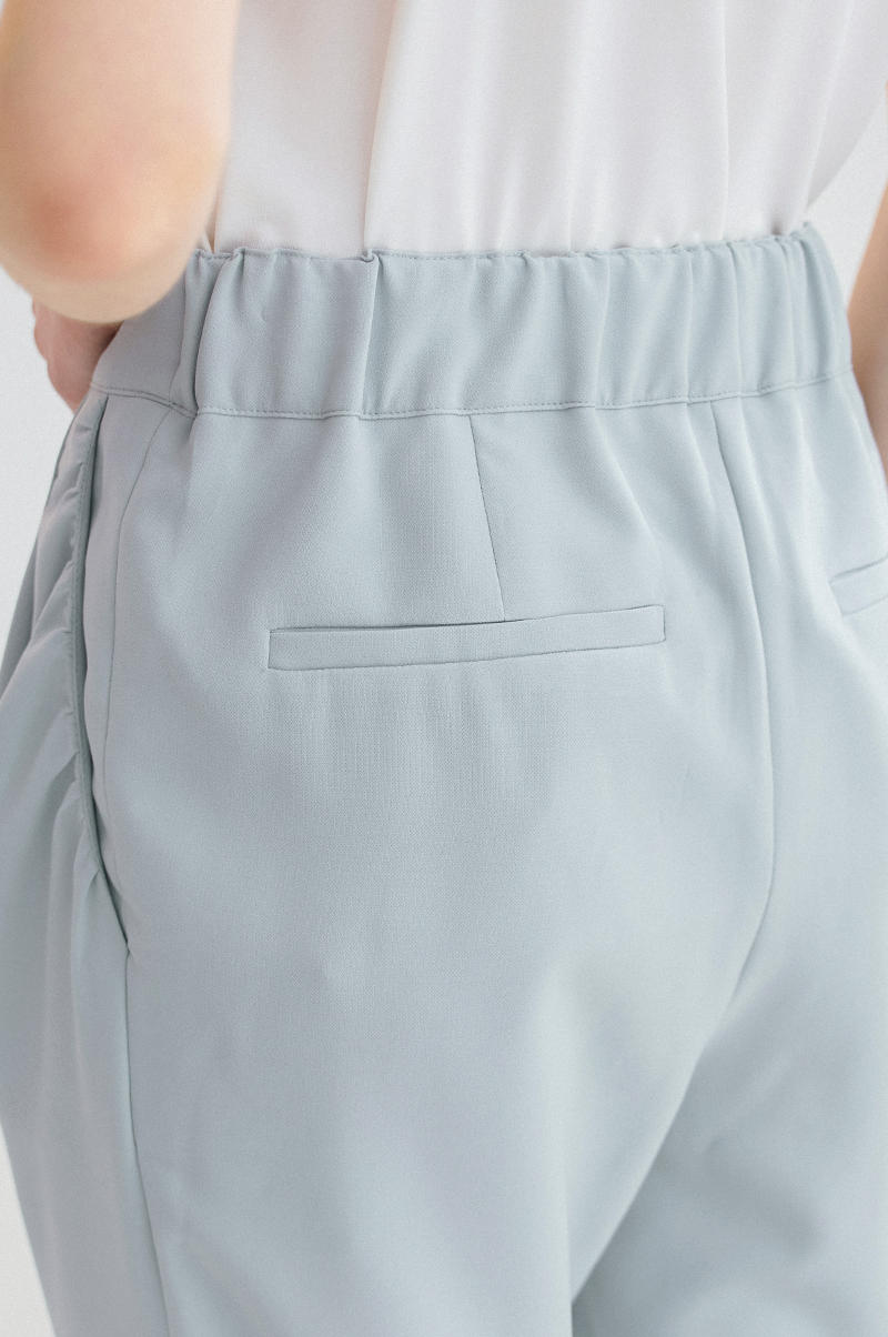 슬림한 일자핏의 실루엣으로 뒤 허리 라인에 밴딩, 밑단에 리브 니팅 소재를 블록하여 탄력이 있으면서 라인을 잡아주고 신축성이 뛰어난 스판 혼방 소재를 사용해 편안한 착용감을 전해줍니다.