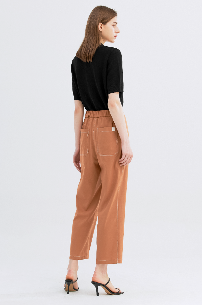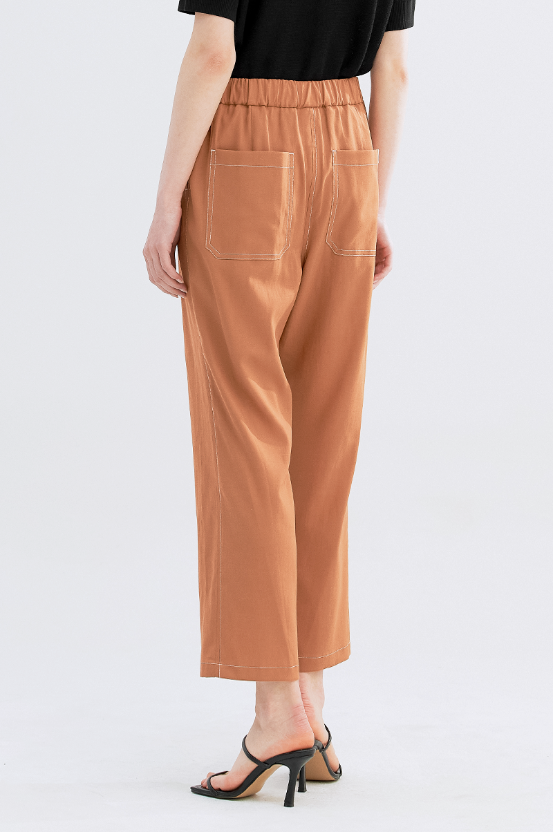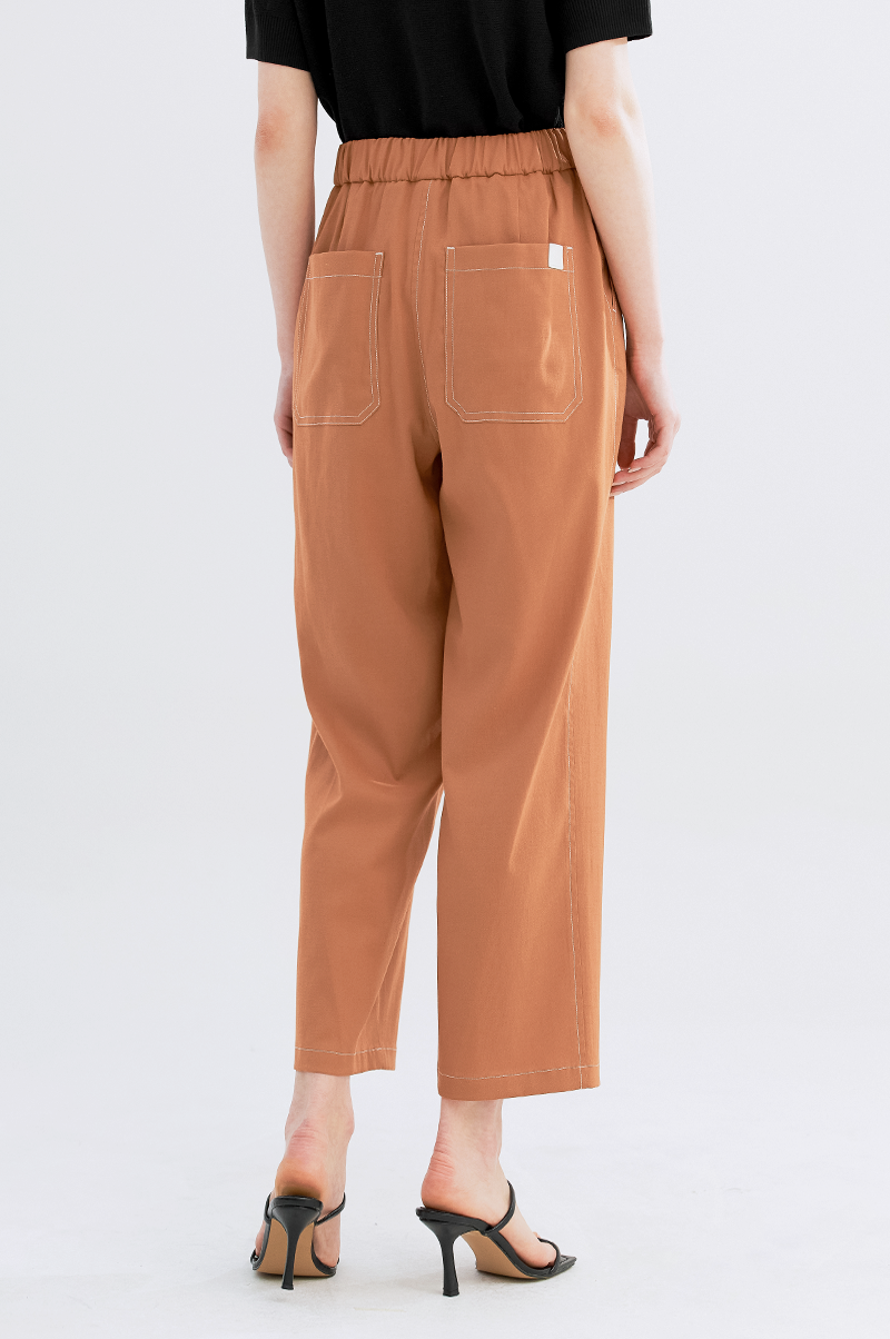 가볍고 내추럴한 터치감의 폴리와 린넨, 스판 혼방 소재를 사용하여 실용적이면서 편안한 착용감을 주는 아이템으로, 상단은 여유롭고 밑단에서 살짝 좁아지는 테이퍼드 실루엣의 팬츠입니다.