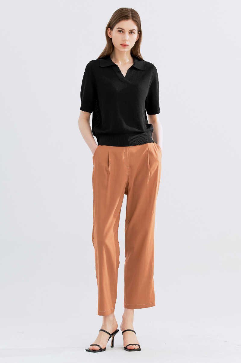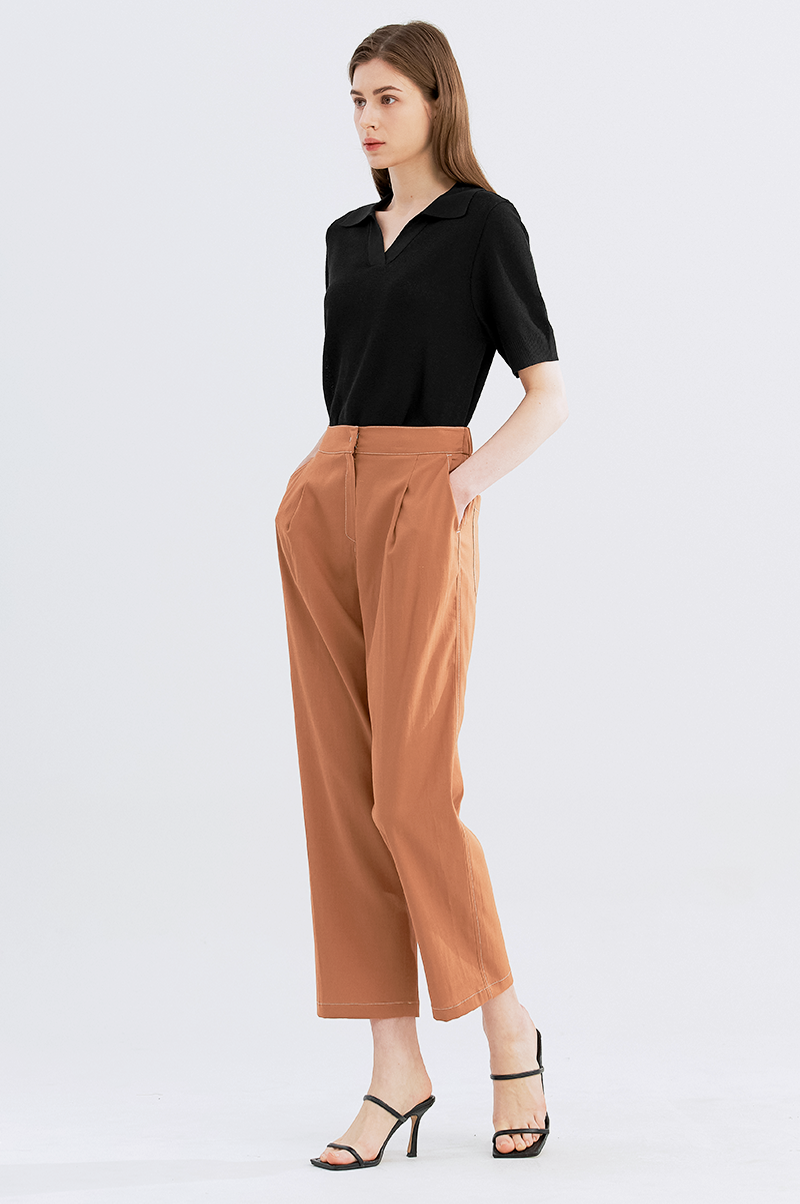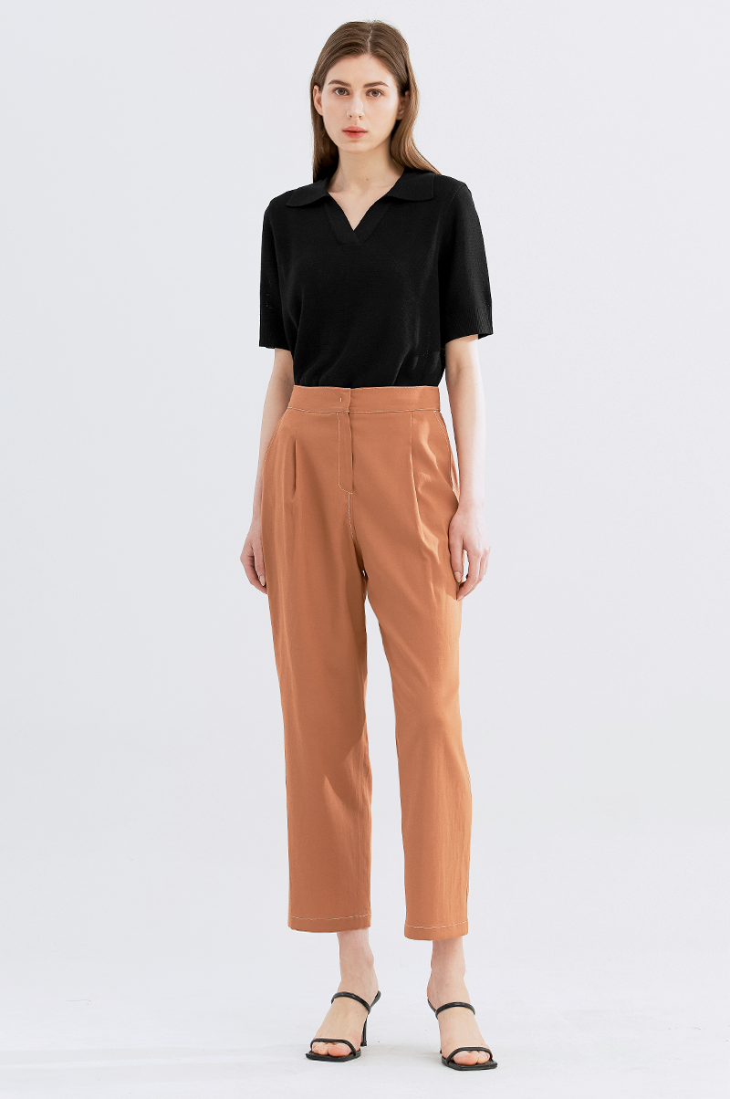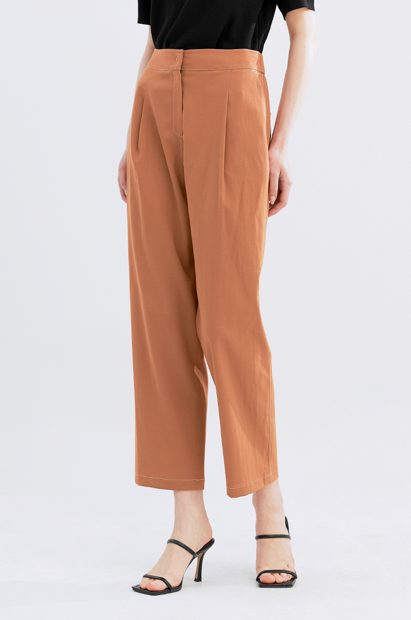 가볍고 내추럴한 터치감의 폴리와 린넨, 스판 혼방 소재를 사용하여 실용적이면서 편안한 착용감을 주는 아이템으로, 상단은 여유롭고 밑단에서 살짝 좁아지는 테이퍼드 실루엣의 팬츠입니다.