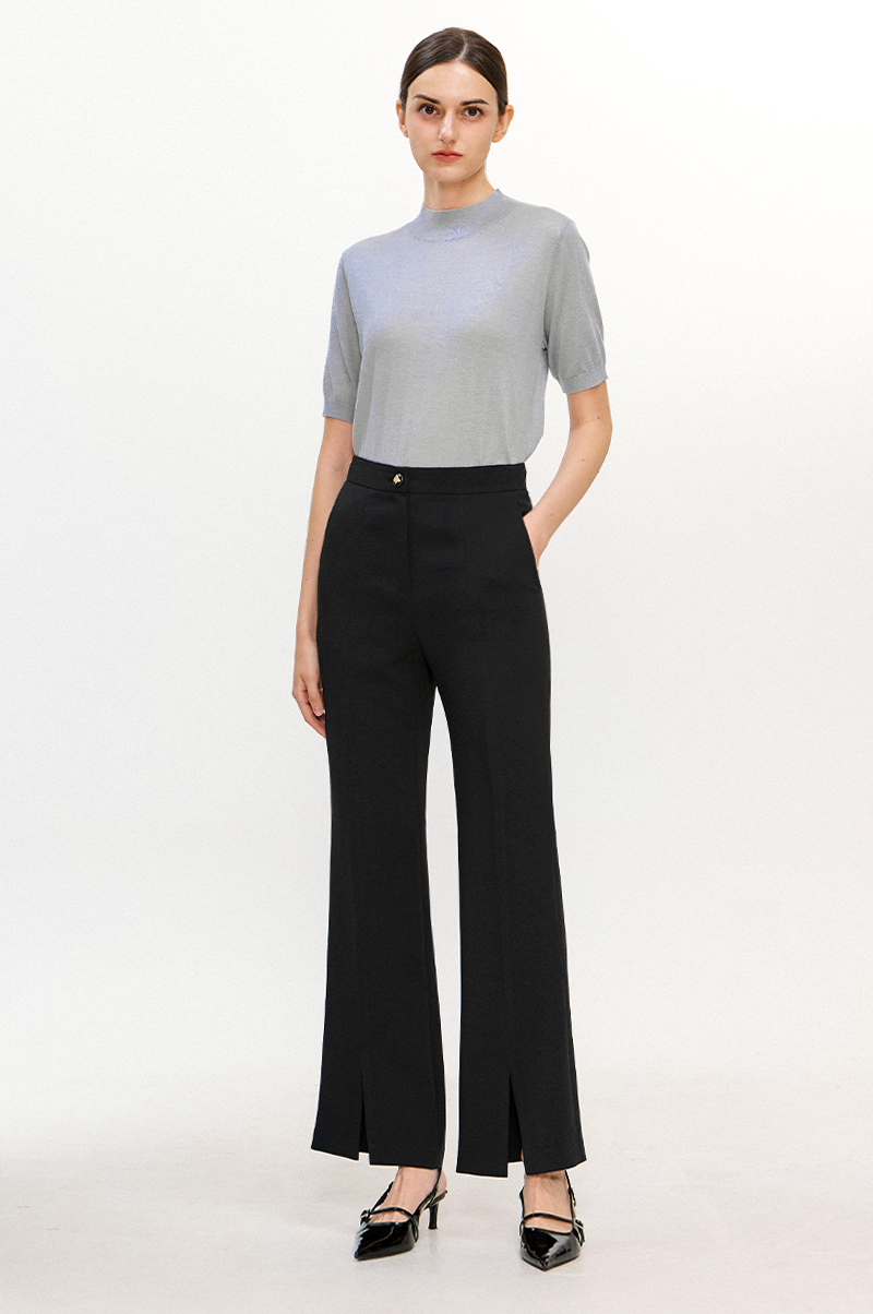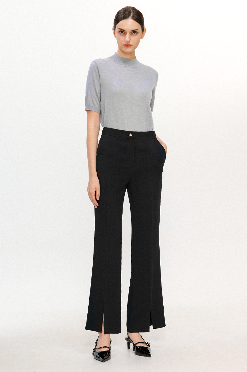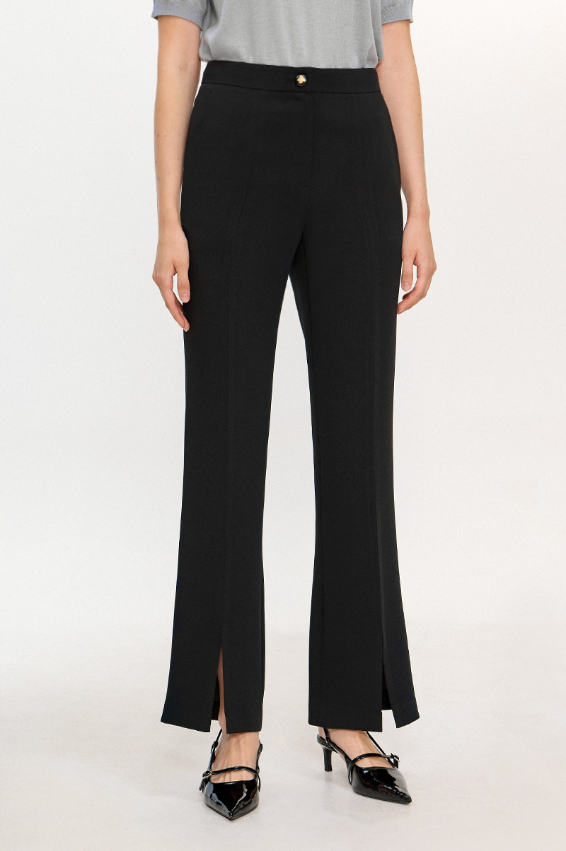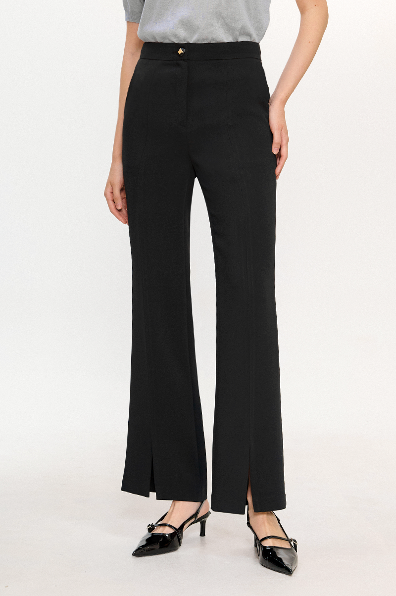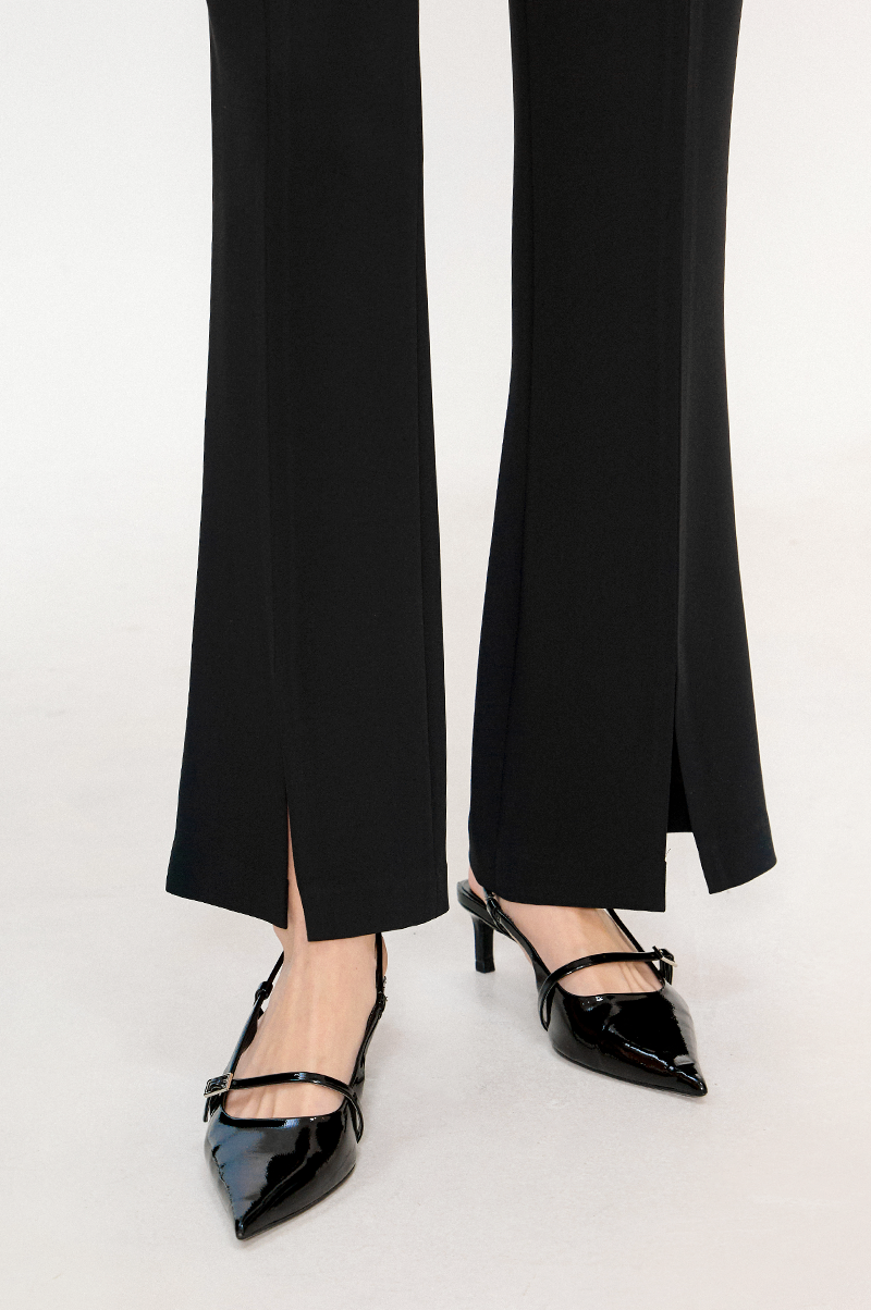 레그 라인을 따라 잡은 주름이 더욱 슬림한 라인을 연출하며 앞면 밑단의 슬릿이 한층 스타일리쉬한 분위기를 자아냅니다.