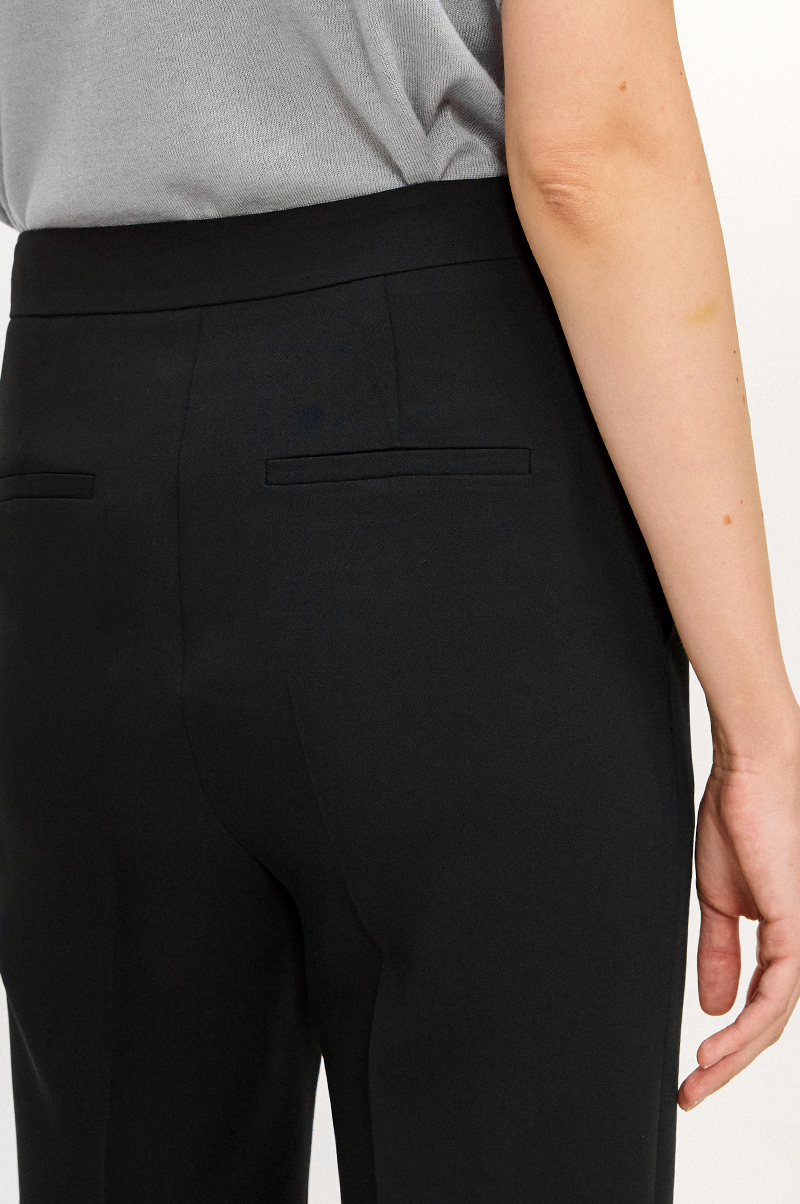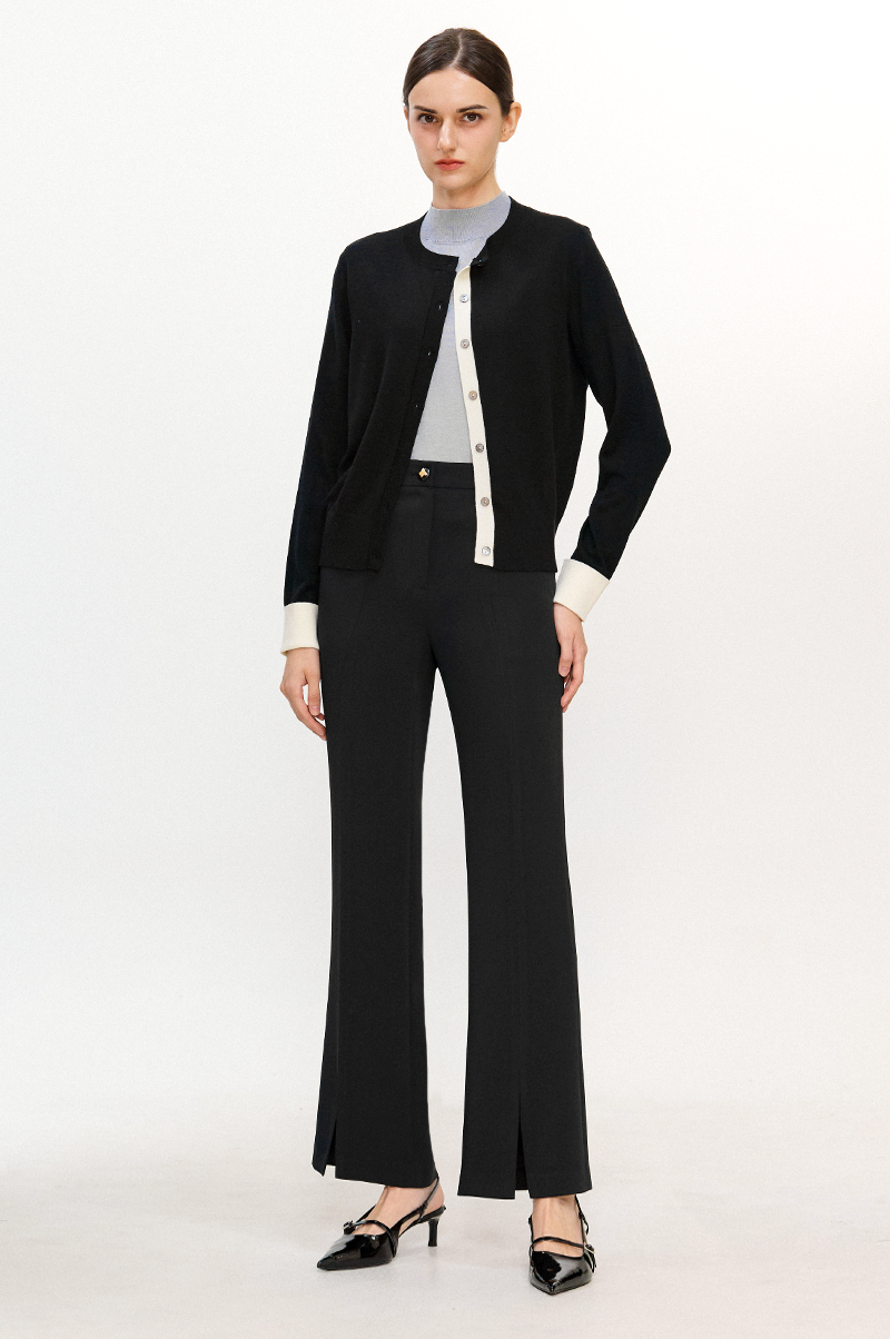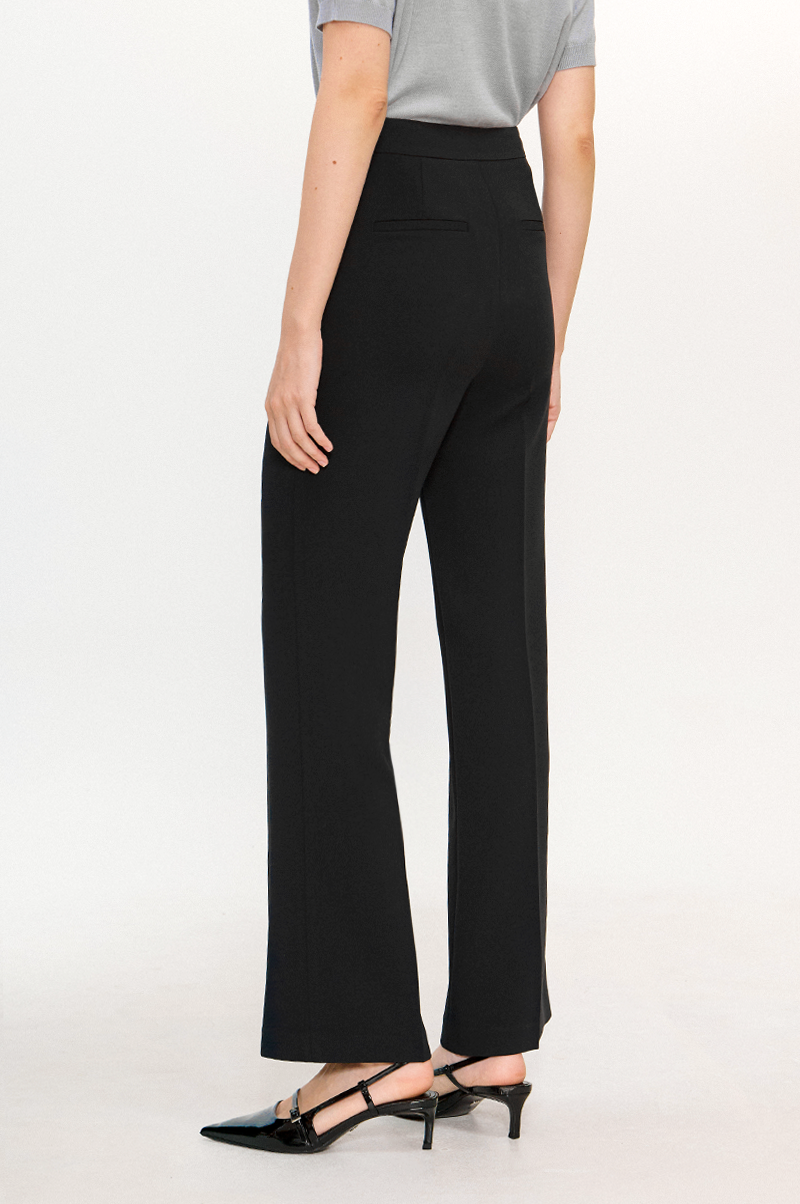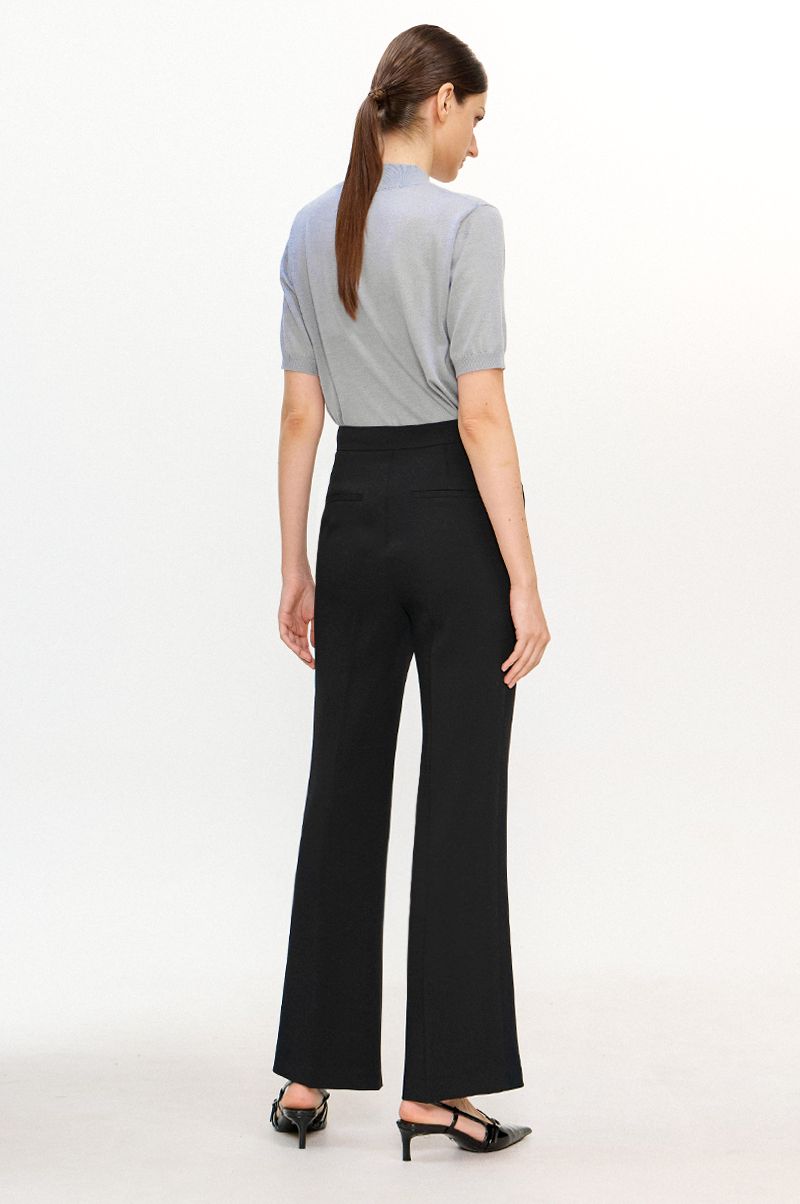 상단은 깔끔하게 핏되고 하단에서 살짝 넓어지는 부츠컷 실루엣으로 세련된 분위기를 선보이는 팬츠입니다.