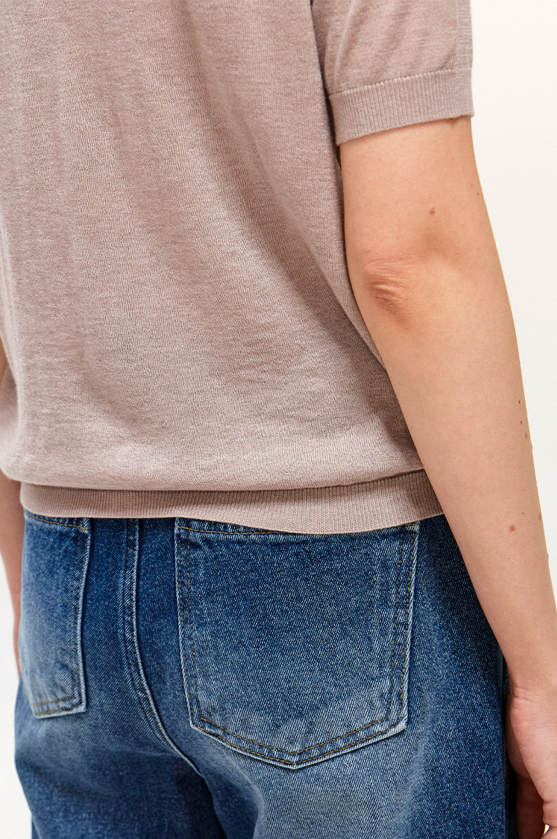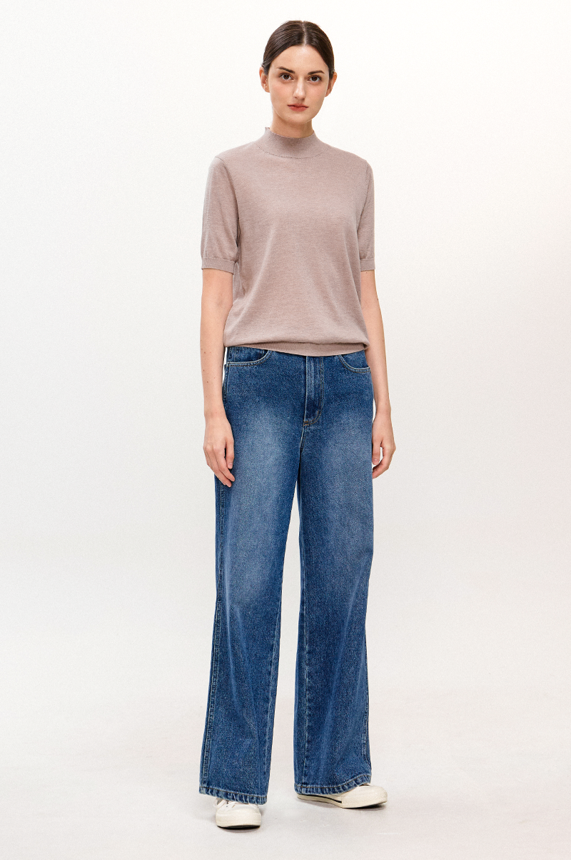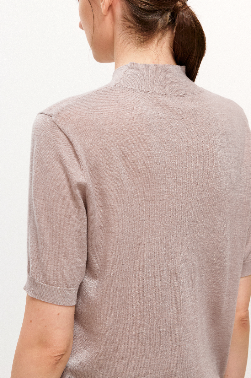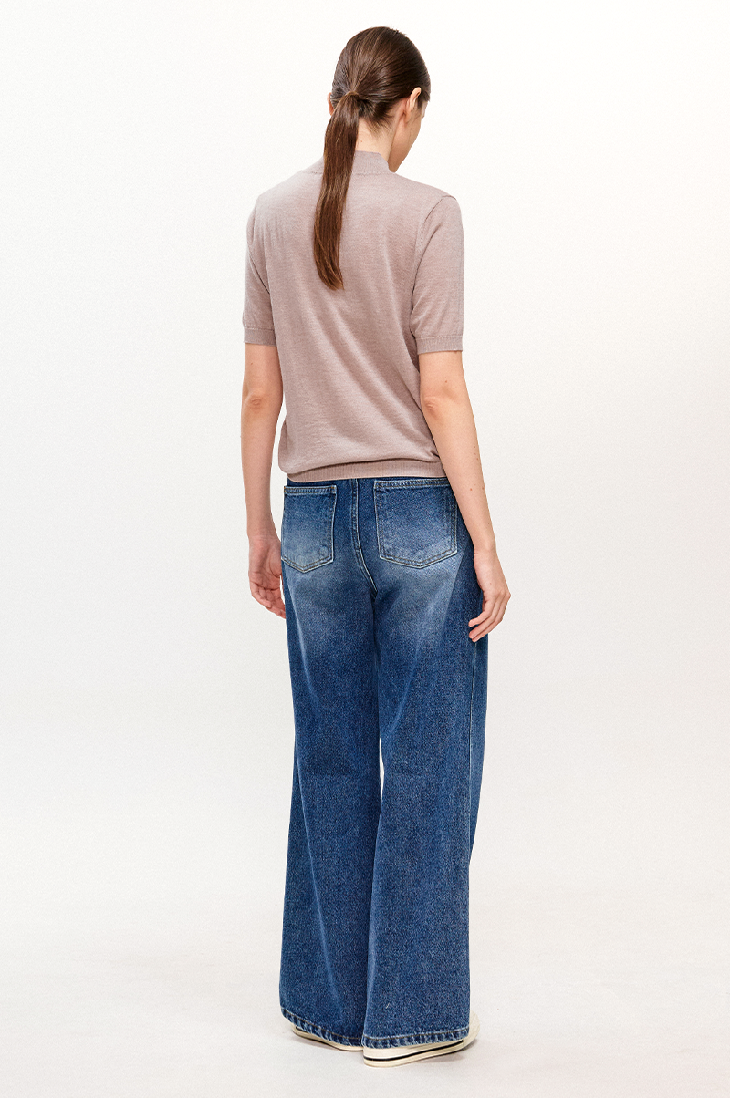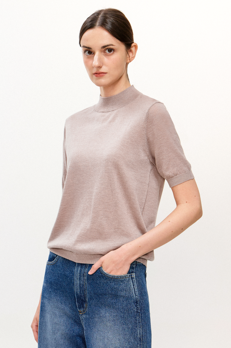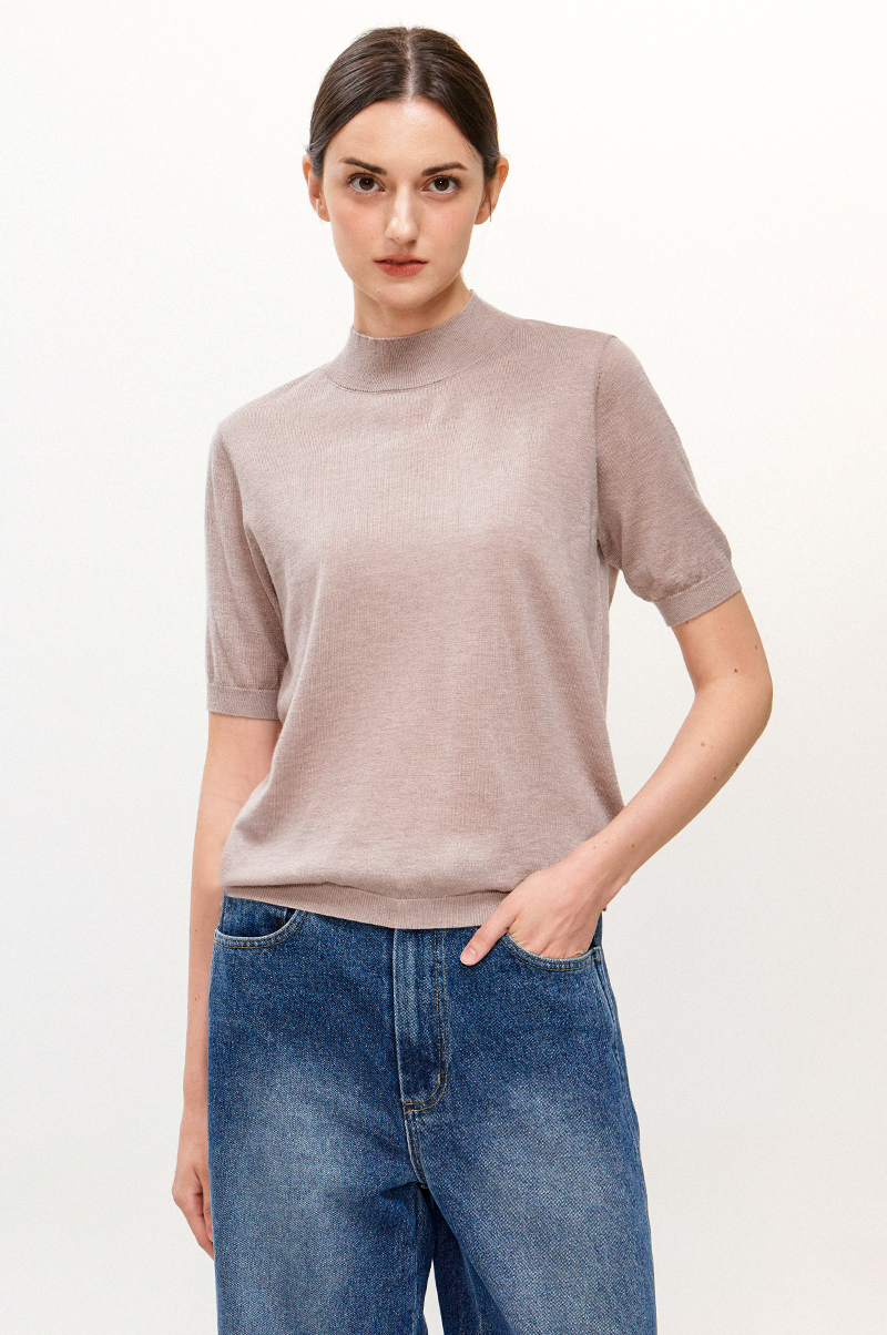 가볍고 부드러운 터치감이 돋보이며 넥 라인을 살짝 감싸주는 모크넥 디자인과 하프 슬리브, 여유로운 슬림한 레귤러 핏으로 몸에 알맞게 맞는 자연스러운 실루엣을 연출합니다.