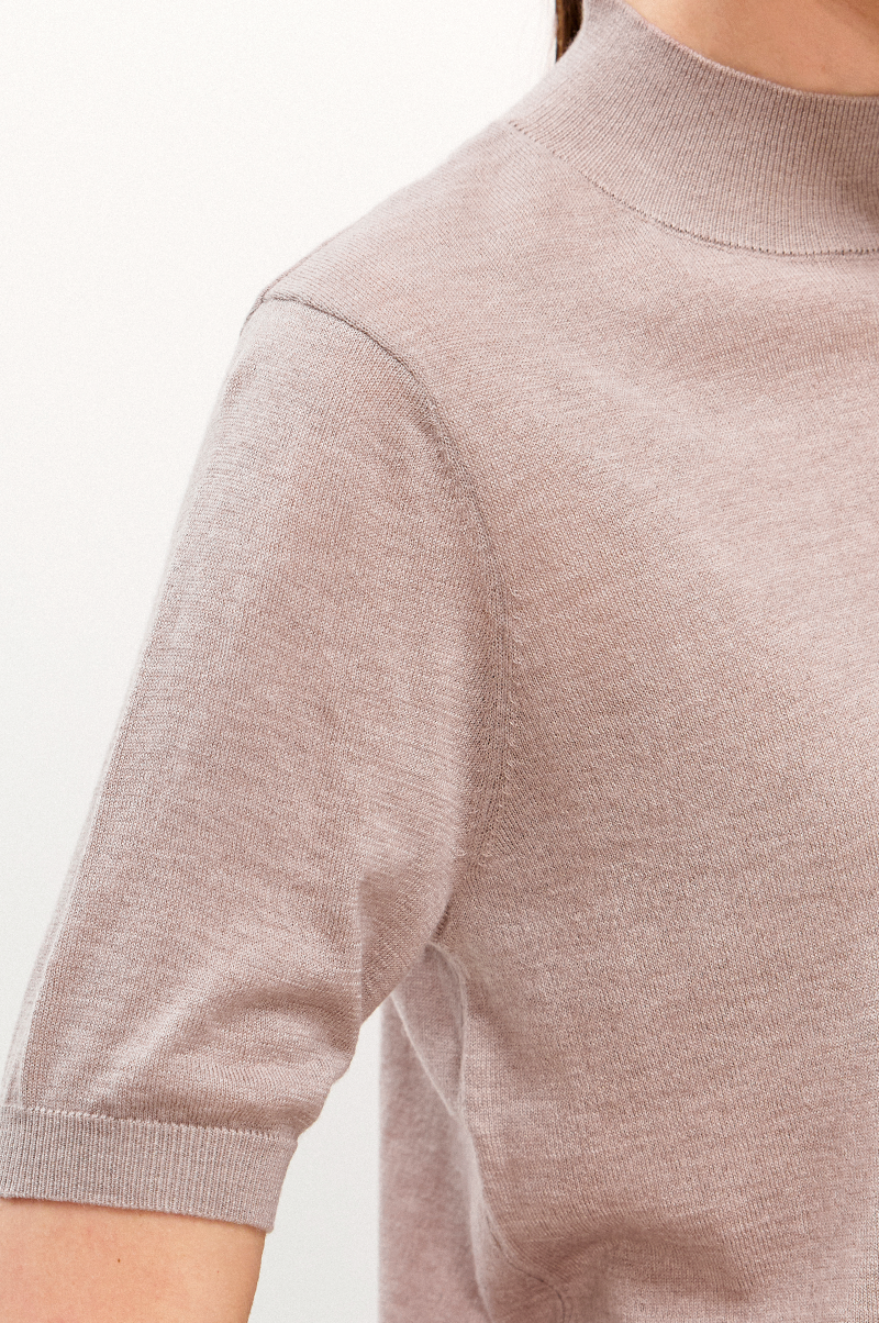메리노울 혼방 소재를 사용한 니트 탑입니다.