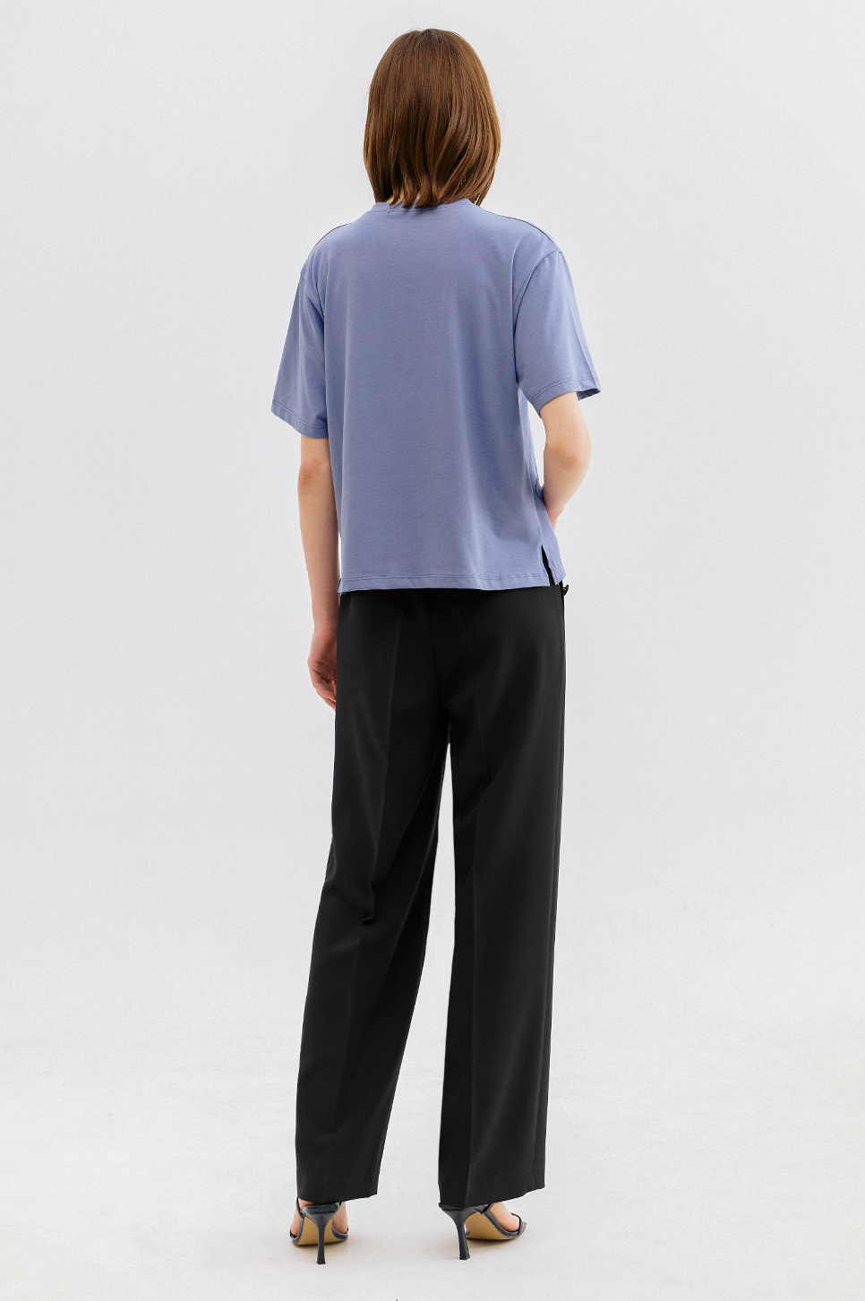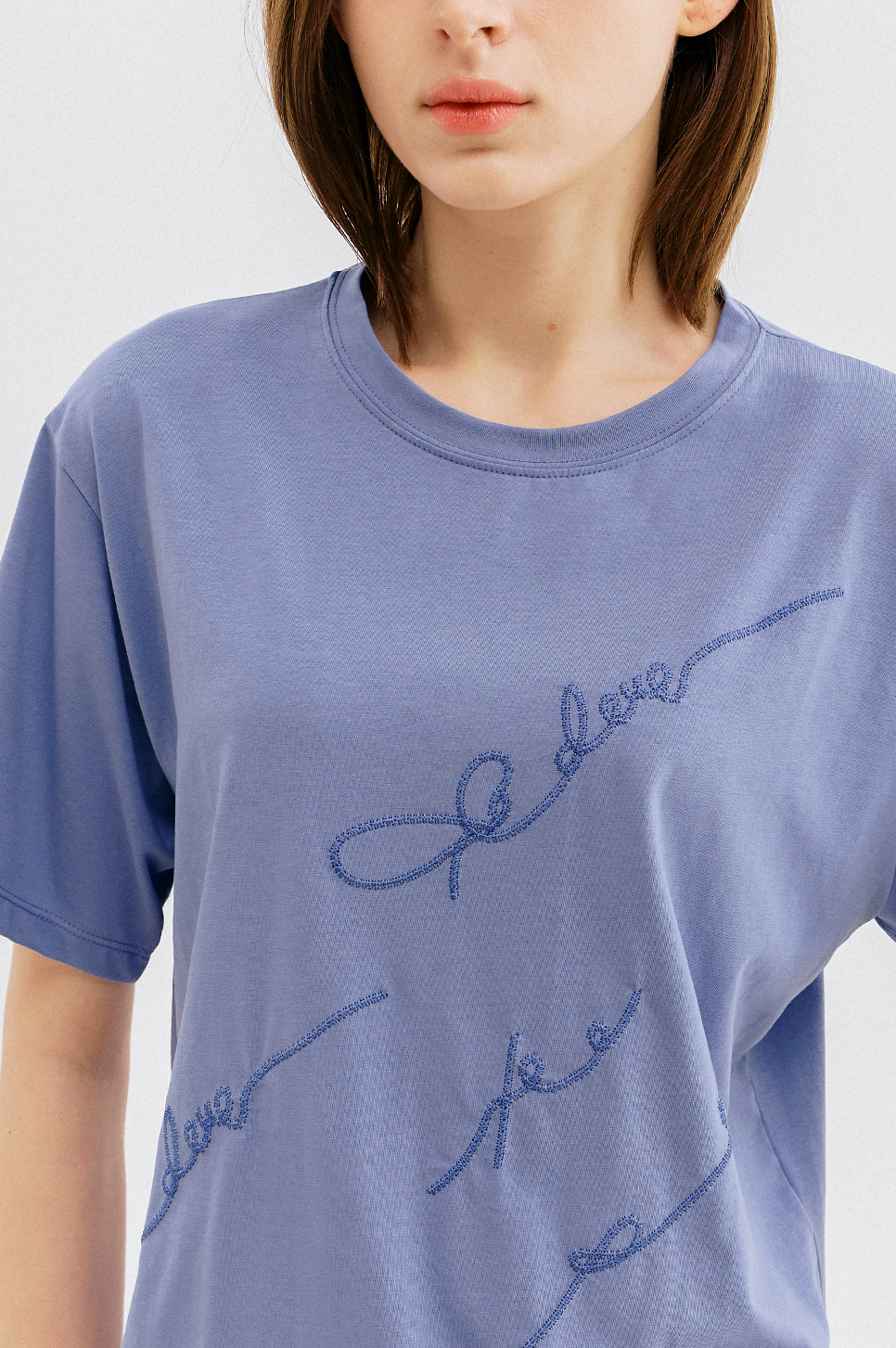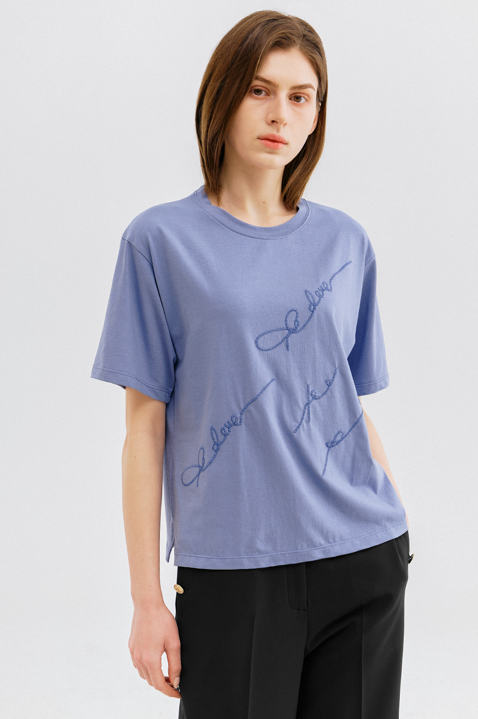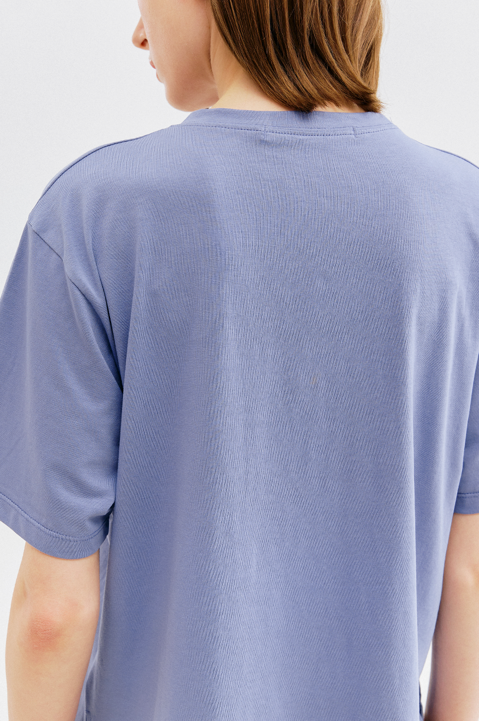 가볍고 부드러운 터치감이 돋보이는 소재로 간결한 라운드 넥과 짧지 않은 하프 슬리브 디자인이 특징이며, 여유로운 실루엣으로 편안한 착용감을 전해줍니다.
