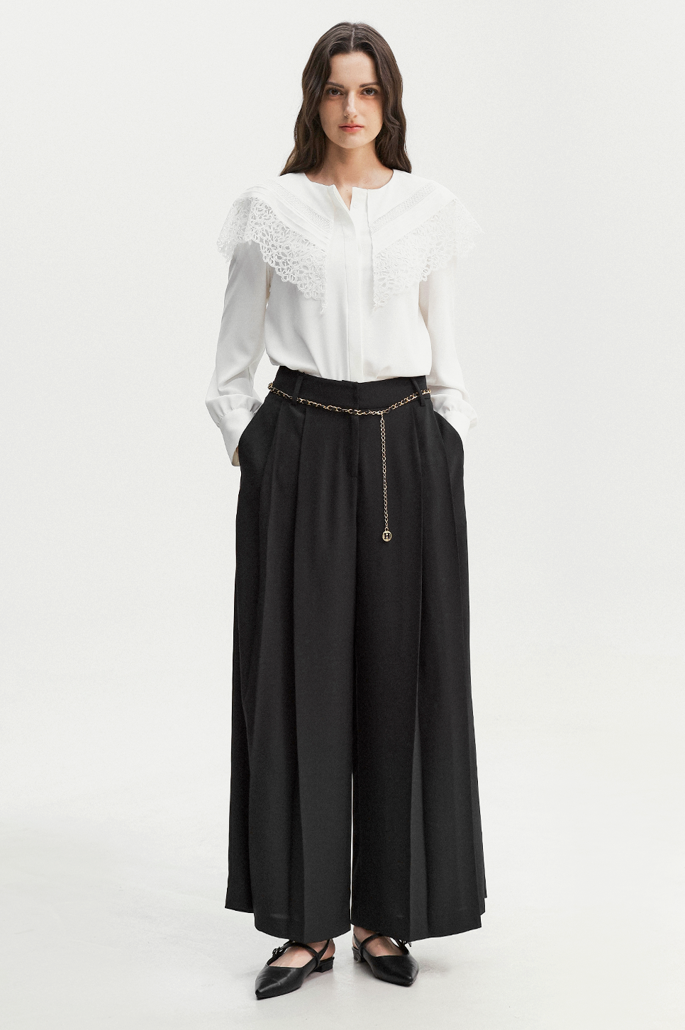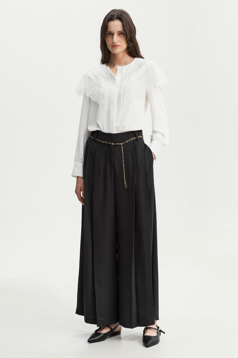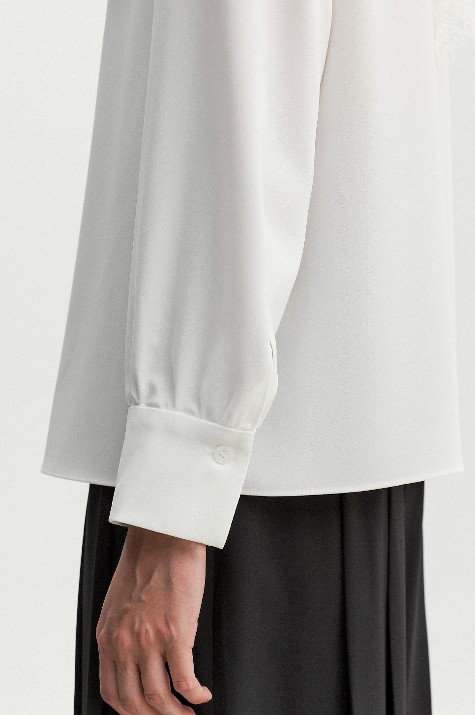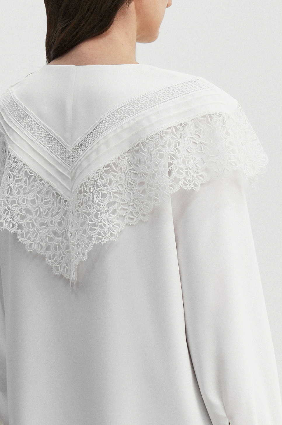 심플한 라운드넥에 부분적으로 레이스를 블록한 케이프를 매칭하여 페미닌하면서도 우아하게 표현한 아이템입니다.